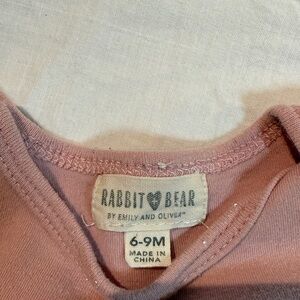 Adorable pink baby onesie by Rabbit Bear. Perfect for 6-9 months.
