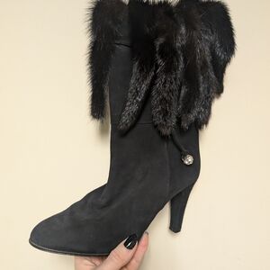 Step out in style with these elegant black fur-trimmed women's boots. Perfect for adding a touch of luxury to any outfit.