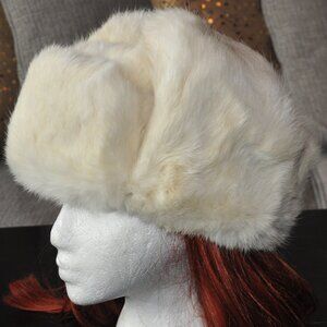 Rabbit Fur Ivory Trapper Hat Ear Flap Après Ski SM Unisex