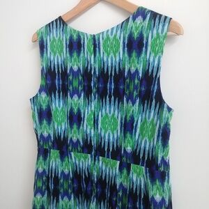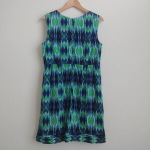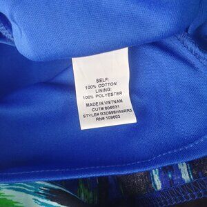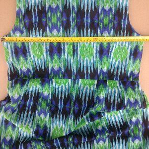 Excellent used condition. 100% cotton with poly lining, pattern in blue, green, black and white. See photos for measurements. Size 12 Petite.