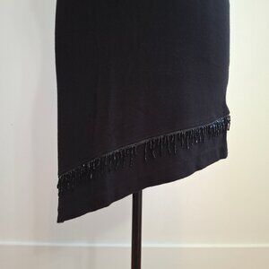 Racerback Bodycon Sz M Midi Sheath Dress Stretch Knit with Asymmetrical Beaded Hem Black