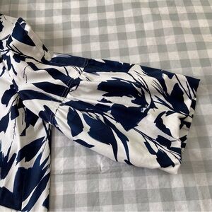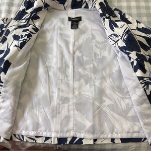 Rachel Adams blazer jacket cotton spandex white blue floral spring summer Medium