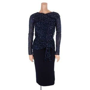Rachel Gilbert Jamilla Layered Embellished Midi Dress Size 4 Blue $1750