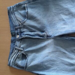 Loose leg jeans with a light indigo wash