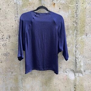 Rachel Mara 100% Silk Blue Print 3/4 Sleeve Blouse Top, XS