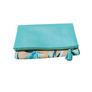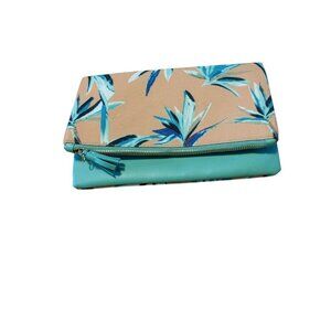Rachel Pally Reversible Foldover Clutch Bag Coral Mint Floral Print Tassel Zip