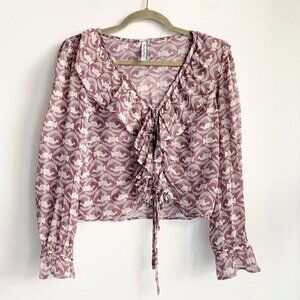 Rachel Pally Bird Print Lavender White Ruffle Detail Blouse Top in size Small is a stylish and feminine piece of clothing for women.