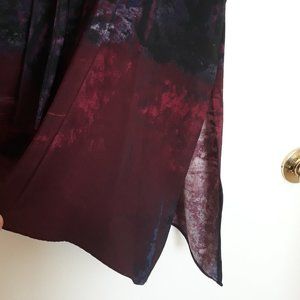 - Watercolour pattern in shades of black, red, pink, purple and blue