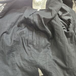 Beautiful and unique blazer/ jacket in neutral tones. Geometric designed black and white front and a brownish gold and black patterned sleeves. zippered cuffs. Asymmetrical zippered closure.
