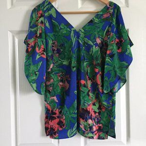 Very loose fit, V-neck shape on front and back, slits on sleeves and at the bottom sides. It's been washed but never worn.