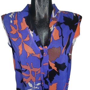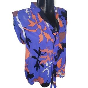 Rachel Roy Blue and Orange Floral Print Blouse M