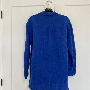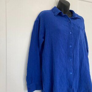 Rachel Roy Comfy Blue Crinkle Cotton Button-up Casual Top Women's Size Large