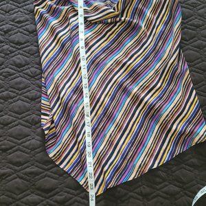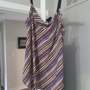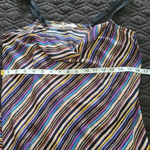 Rachel Roy multi-coloured striped Summer top. Size large. Light fabric and adjustable straps. Slightly longer and angled at the front (see pictures). Measurements also in pictures. Only worn a couple of times and is like new.