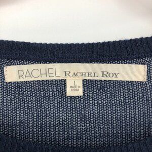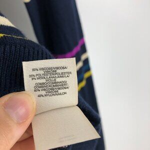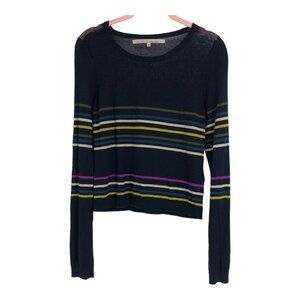 Rachel Roy Navy & Multicolor Striped Knit Longsleeve Cropped Sweater size L