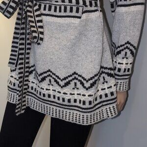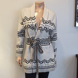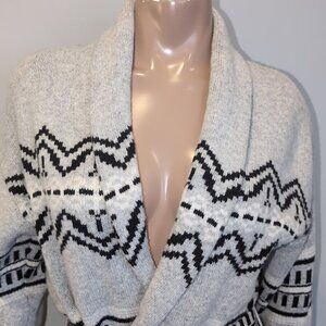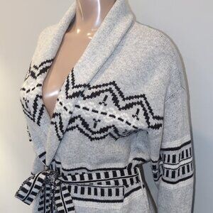 Rachel Roy Wool Blend Belted Cardigan Sweater Tribal Aztec Cowichan Winter Shawl