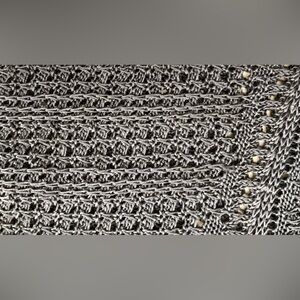 Pullover sweater, open knit with good weight and drape. Vegan panel detail.
