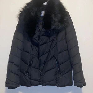 Rachel Roy black puffer faux fur water repellent jacket Sz L