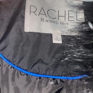 Rachel Roy black puffer faux fur water repellent jacket Sz L