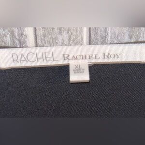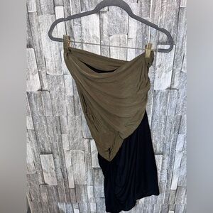 This elegant Rachel Roy dress features a sophisticated olive drape over a classic black base, perfect for any occasion. The unique design offers a chic and modern look.