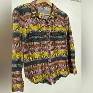 🎈Rachel Roy women snake print button down long sleeve 100% viscose top size 6