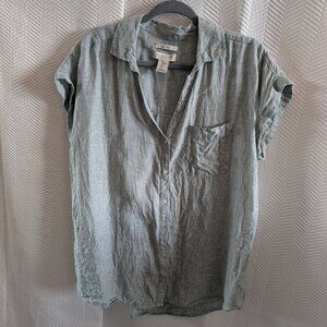 Rachel Zoe 100% Linen Short Sleeve Shirt Light Blue Button-down Collar Medium