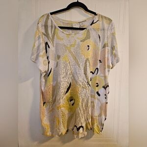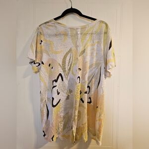 Rachel Zoe 100% Linen Womens 2X plus size floral white shirt top tunic NWT