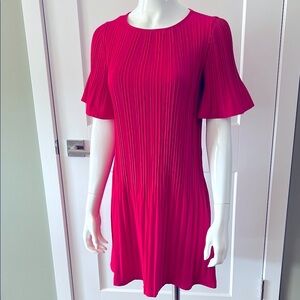 Beautiful hot pink dress in pin style pleats that widen slightly at skirt.