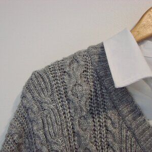 Rachel Zoe Gray Cable Knit Sweater White Collar Shirt V-neck ~ Size Large and XL (see measurements) ~ Body: 52% Polyester, 42% Rayon, 6% Nylon