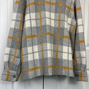 Rachel Zoe Grey/Cream/Mustard Plaid Sweater Shacket Size S (fits oversized)