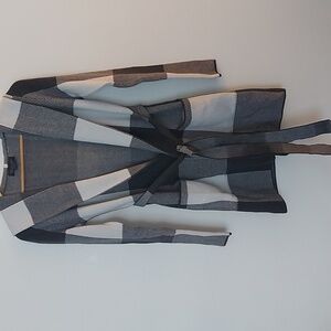 Rachel Zoe Hooded Belted Open Front Cardigan Black/Gray Plaid Size XS