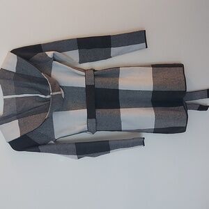 Rachel Zoe Hooded Belted Open Front Cardigan Black/Gray Plaid Size XS. Rayon Blend. Super soft and cozy.