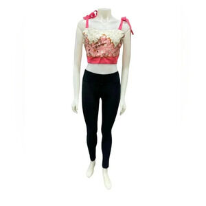 Rachel Zoe NWT Linen Blend Crop Tank Tie Up Floral Pink/White/Gold Size Medium