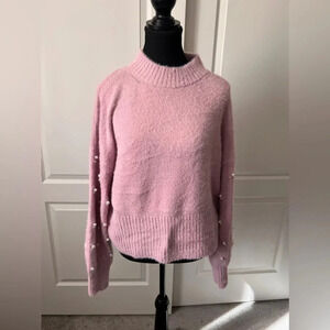 Rachel Zoe | Pearl Embellished Sleeve Mock Neck Lavender Sweater | Size M [123]