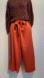 Elevate your style with these chic satin rust color wide leg cropped pants. Two side pockets. Elastic waist with tie. Side slits