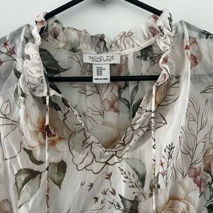 Rachel Zoe Sheer Floral Top Sz XS with Attached Camisole Ruffled Collar