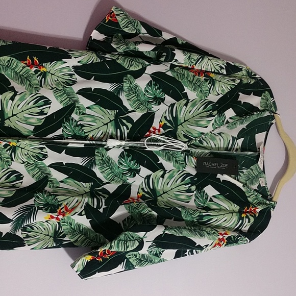 A beautiful trendy NWT tropical pattern by Rachel Zoe. Perfect for a beach cover up or you can pair it with a white tank top and Jean cut offs. It's one size only.