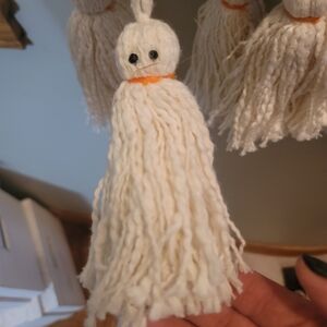 Stylish black and white checkered table runner with cute ghost tassels. Perfect for adding a chic touch to any Halloween table decor