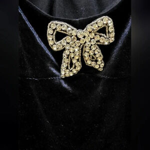 Short Black Velour blouse with crystals bowl brosh