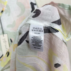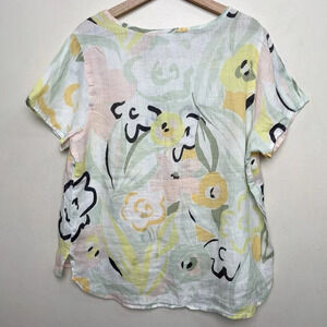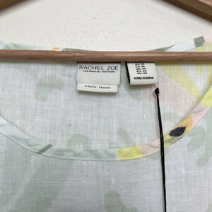 Rachel Zoe Womens 1X Linen Non Stretch Short Sleeve Floral Blouse