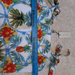 Rachel Zoe Women's Linen Blend Floral Crop Top Tropical Pineapple Size M