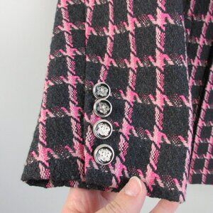 Rachel Zoe Women's Tweed Blazer Jacket L Black Pink Plaid Wool Blend Career 1126