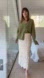 In excellent condition, no call outs. Textured crochet with an elasticized waistband. Partially lined. Has a trumpet style cut, slightly flaring to the scalloped hemline.