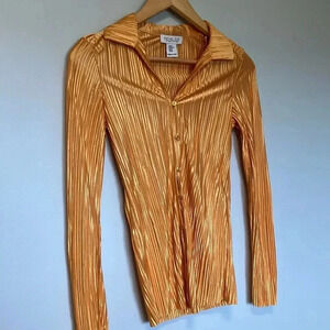 Rachel Zoe yellow mustard satin ribbed shirt pants set suit