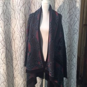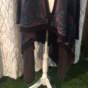 These are the best sweaters ever! Wraps around the front with a clasp and button, or leave open. It is in worn condition but no snags in material, has been cared for! The pattern on the back is great! Please ask questions if you have any before purchasing all sales final as per POSHMARK.