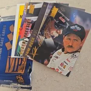 Collection of racing trading cards. Includes various designs and colors. All yellow Nascar packs sealed, VIP '94 opened. All cards in pristine condition! selling as a lot.
