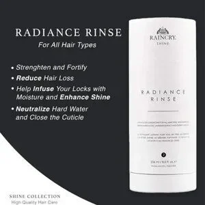 Raincry Radiance Rinse incorporates Keratin Amino Acids to help strengthen and fortify your hair to reduce split ends and breakage.