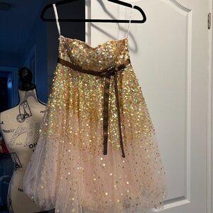 Shine bright in this stunning short A-line sequin dress, designed to dazzle at any event. Featuring a flattering silhouette that cinches at the waist and flows gracefully, this dress sparkles with every move. Perfect for parties, cocktail events, or a glamorous night out, it’s the ultimate combination of fun and elegance.