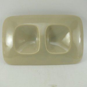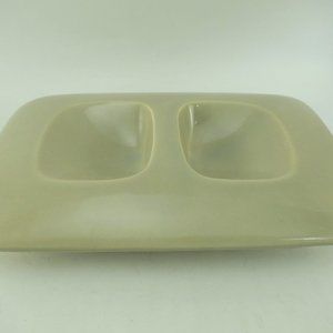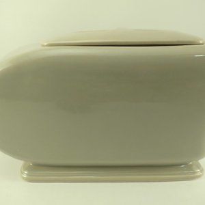 This vintage Transister Radio Cookie Jar from Essentials Japan is a must-have for any retro kitchen. The light olive green ceramic and porcelain jar features a lift-off lid and measures 10.5 inches in length, 6.5 inches in height, and 5.5 inches in width. With its original design this cookie jar boasts a classic vintage style from the late 1960s-1970s. Perfect for storing your favorite treats, this unique piece also serves as a charming decorative item for collectors of kitchen storage and organization.