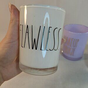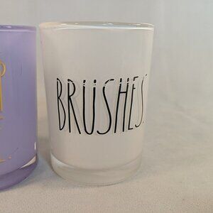 Rae Dunn 3 Set Makeup Junkie Brushes Glass Cup Holders Flawless White Purple