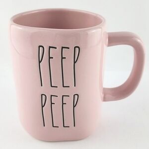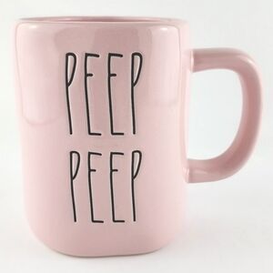 NEW Rae Dunn Artisan Collection by Magenta mug in glossy pastel pink with fun large black large letters PEEP PEEP engraved on one side and a glossy pink interior.